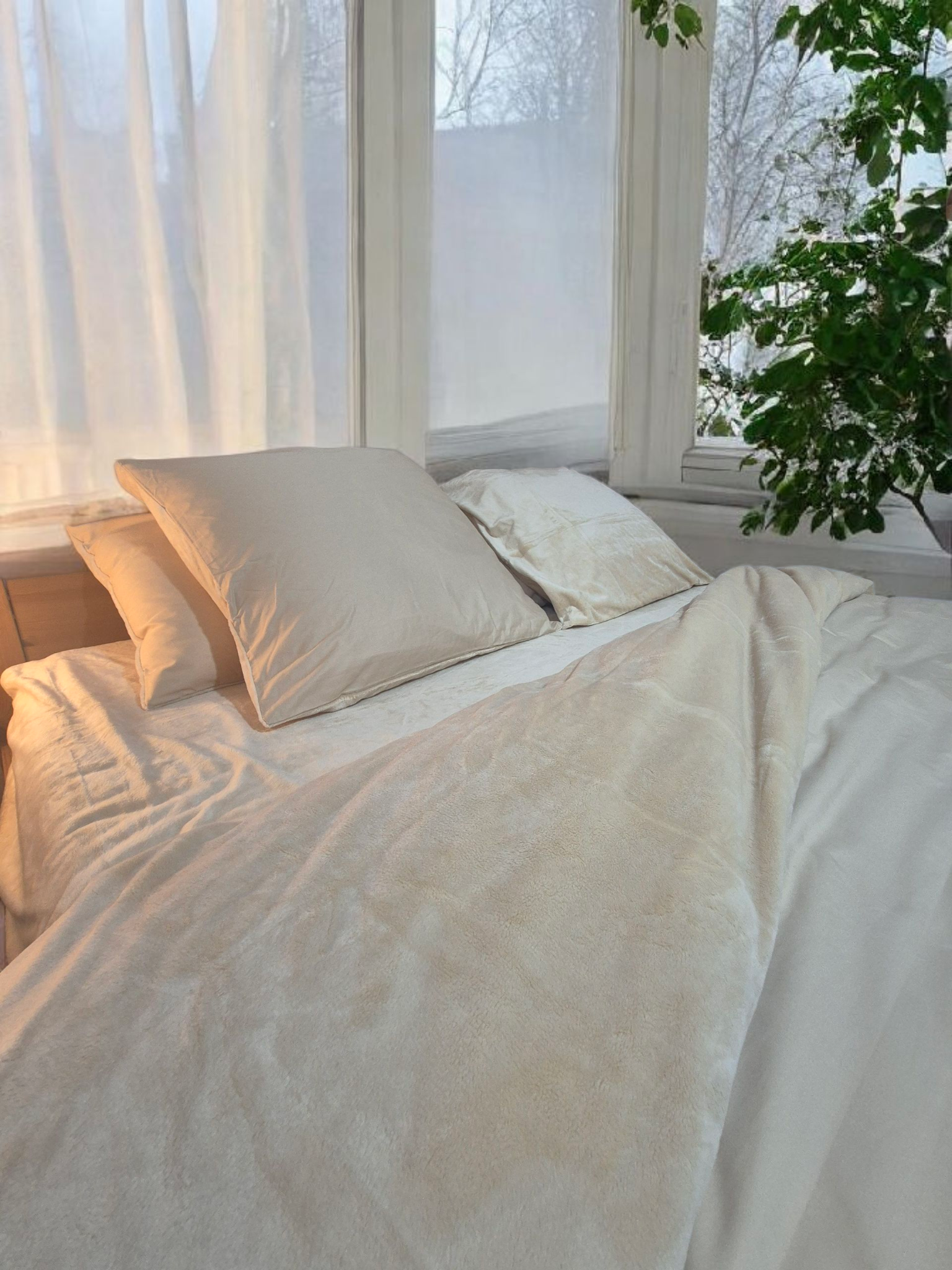 Enveloppez-vous de douceur avec cette parure complète pensée pour le confort ultime. Composée d'un drap housse 100% Minky adapté aux matelas épais, d'une housse de couette et de deux taies d'oreillers qui associent le Minky à l'intérieur pour une sensation incomparable de moelleux, et le polycoton 50/50 à l'extérieur garantit durabilité et facilité d'entretien. Le minky, réputé pour ses propriétés thermorégulatrices et hypoallergéniques, crée un environnement de sommeil optimal. Cette combinaison de matières offre le meilleur des deux mondes : le luxe tactile du minky et la praticité du polycoton. Transformez votre lit en véritable cocon de bien-être.