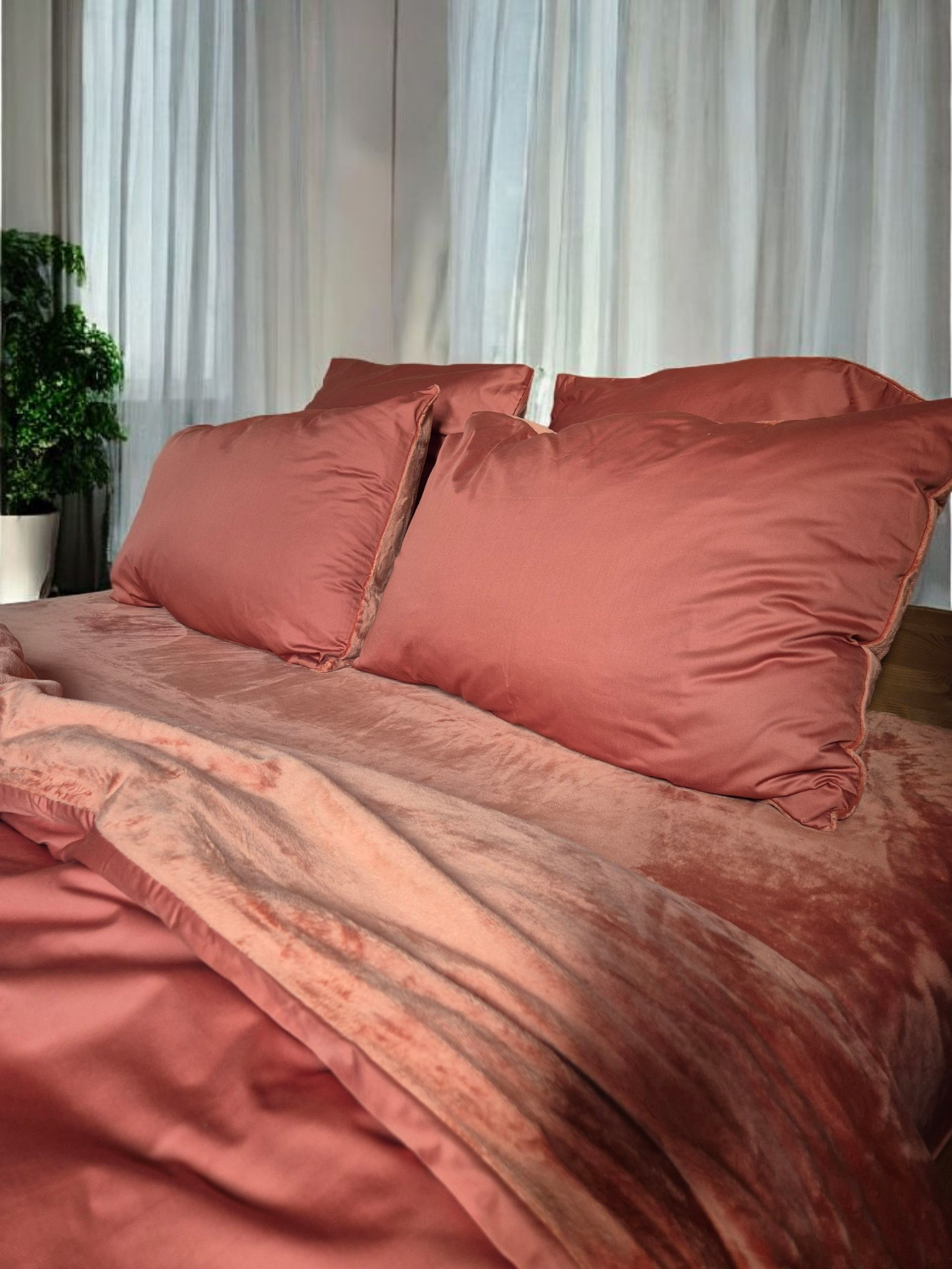 Enveloppez-vous de douceur avec cette parure complète pensée pour le confort ultime. Composée d'un drap housse 100% Minky adapté aux matelas épais, d'une housse de couette et de deux taies d'oreillers qui associent le Minky à l'intérieur pour une sensation incomparable de moelleux, et le polycoton 50/50 à l'extérieur garantit durabilité et facilité d'entretien. Le minky, réputé pour ses propriétés thermorégulatrices et hypoallergéniques, crée un environnement de sommeil optimal. Cette combinaison de matières offre le meilleur des deux mondes : le luxe tactile du minky et la praticité du polycoton. Transformez votre lit en véritable cocon de bien-être.
